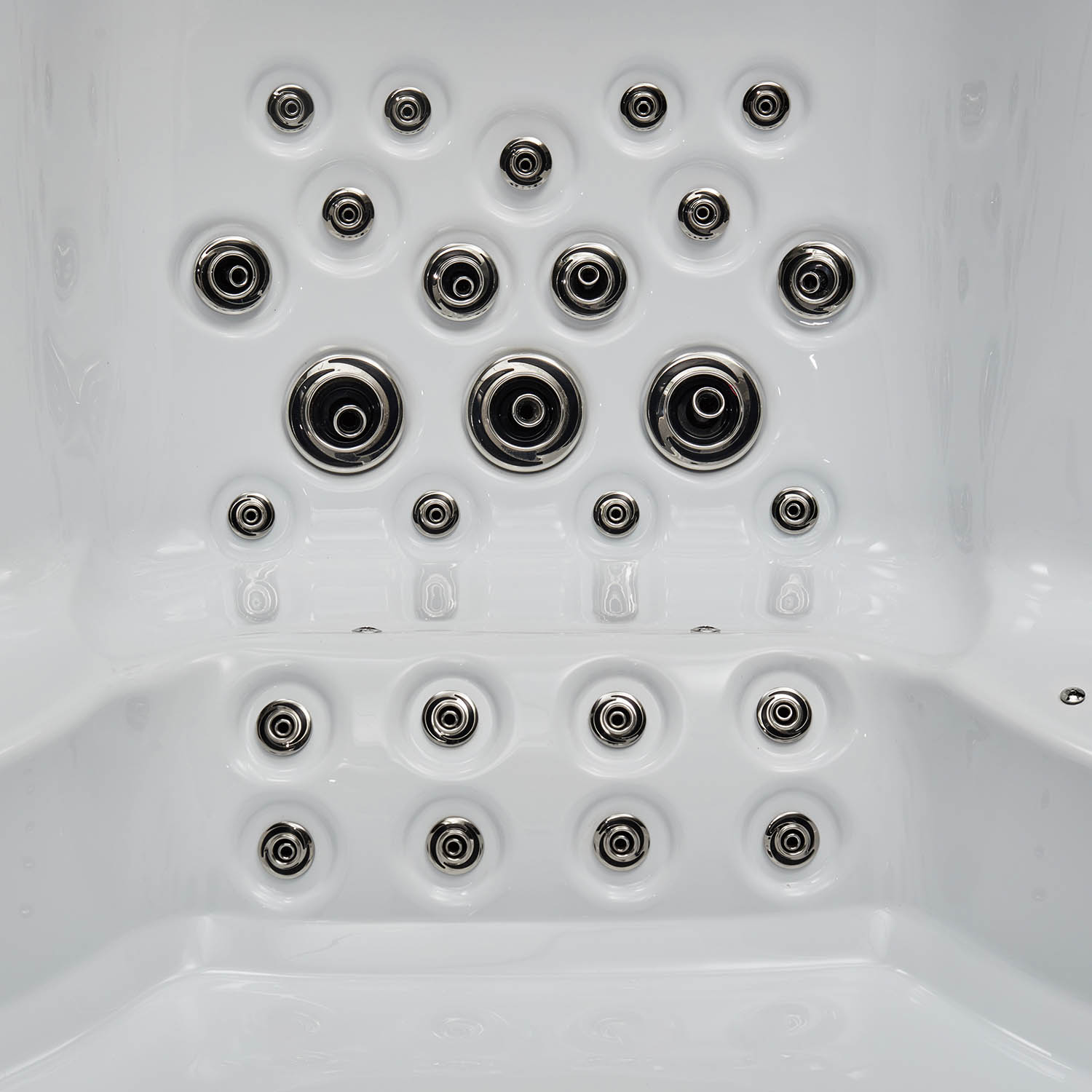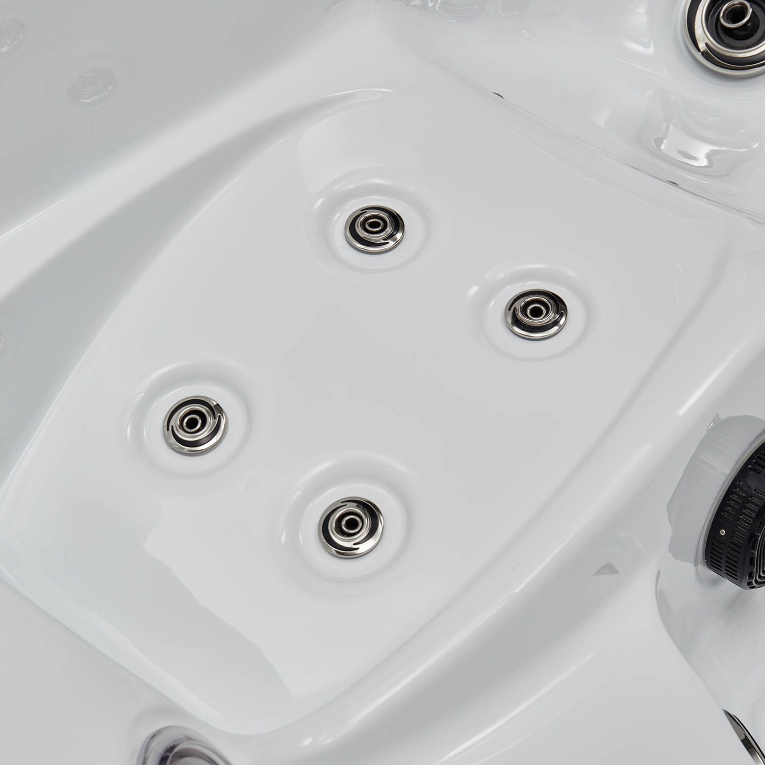 Важным и необходимым аспектом работы бассейна является система фильтрации в виде картриджного фильтра и озонатора. Эта система очистит воду на все 100%, не используя при этом различных химикатов. Немаловажную роль для стильного дизайна играет LED-подсветка, создаёт дополнительное освещение, поэтому пользоваться бассейном можно и в темное время суток. Струи воздуха и воды улучшают качество массажа, способствуют хорошему кровообращению в организме, благодаря форсункам. Регулируйте направление, мощность и давление воды или воздуха на форсунках с помощью электронной системы управления Balboa BP6013G2 + TP600 (США).