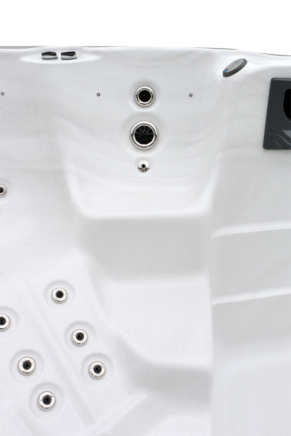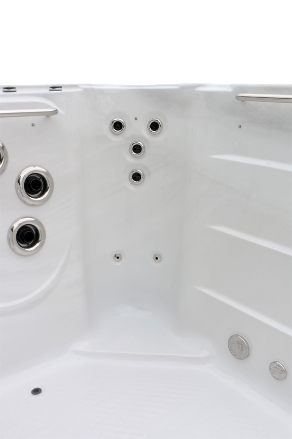 Мощная система с тремя насосами по 2,2 кВт и дополнительным насосом 1,5 кВт обеспечивает эффективный массаж посредством 20 форсунок. Оптимальное распределение водяных потоков гарантирует приятное расслабление для каждой группы мышц.